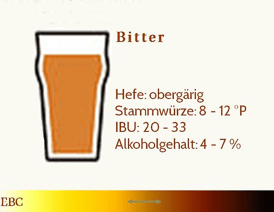 Bitter ist ein obergäriger, englischer Bierstil das in der Farbe von golden bis zu dunklem Bernstein variiert und einem Alkoholgehalt von meist 5 - 6 % Vol. aufweist.