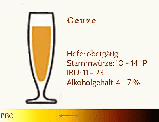 Geuze (auch Gueuze) ist ein obergäriges, belgisches Bier das in der Farbe von mattgolden bis relativ helles Bernstein variiert und einem Alkoholgehalt von meist 4-6 %. vol. aufweist.