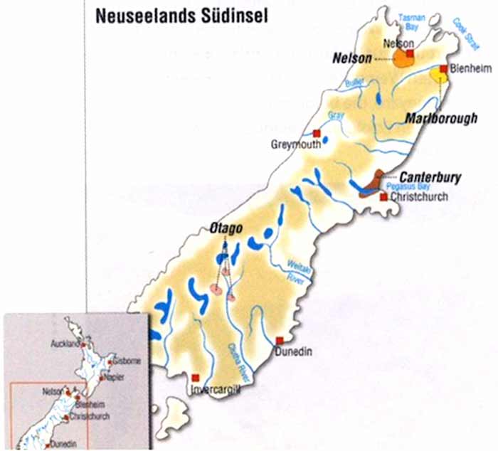 Das Anbaugebiet Canterbury rund um die Stadt Christchurch an der Ostküste der Südinsel hat in seinem westlichen Rücken die schützenden "Südlichen Alpen". Wein wird auf der weiten Ebene zwischen der Küste und den Bergen nahe der Hafenstadt Christchurch angebaut. Das Klima ist kühl und trocken, die Böden recht kalkhaltig, sodass hier neben Pinot Noir auch Riesling und Chardonnay gute Weine hervorbringen.