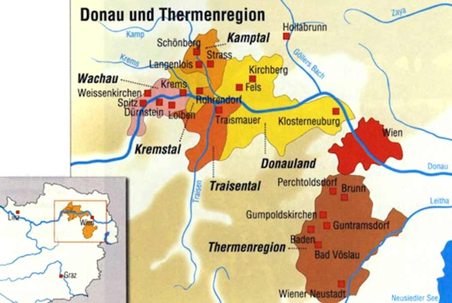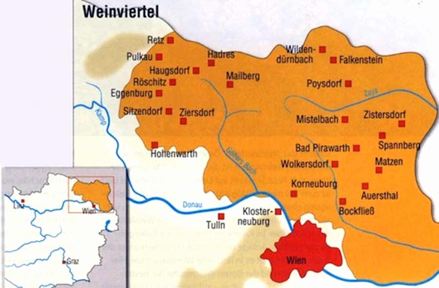 Portugieser (70 Hektar) und Blauburgunder (60 Hektar). Die Reben werden überwiegend auf Lehm- und Lößböden, gelegentlich auf Granitformationen angepflanzt. Von Letzteren kommen die besten Weißweine, die in ihrer rassigen, trockenen und extrakthaltigen Art an die Gewächse aus den weiter westlich gelegenen Anbaugebieten erinnern. Die Rotweine von den tiefgründigeren Böden sind feurig und körperreich. Bekanntester Erzeuger ist Ludwig Neumayer.