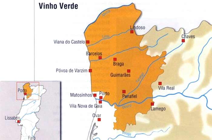 Albarinos. Die größte DOC Portugals liegt zwischen der spanischen Grenze am Fluss Minho im Norden, dem Atlantik im Westen und den Flüssen Tämega und Douro im Osten des Anbaugebietes. Vinho Verde erstreckt sich über die Bezirke Viana do Castelo und Braga in der Provinz Minho und einen Teil nördlich von Porto. Das Gebiet ist identisch mit dem Landweinbereich Minho. Hier werden rund 20 Prozent der gesamten Traubenernte Portugals gelesen.