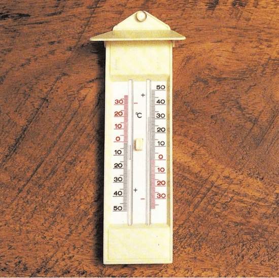 Der einzige Weg, um sicher zu erfahren, was im Keller vor sich geht, ist ein Maximum- und Minimum-Thermometer. Nur so kann man jederzeit die höchsten und niedrigsten Temperaturen feststellen (mit einem Knopf oder Magnet wird das Thermometer immer wieder neu eingestellt). Ich habe viele Leute getroffen, die mir allen Ernstes versichern, ihr Keller habe eine immer gleichbleibende Temperatur. Auf Nachfragen stellte sich jedoch heraus, daß sie kein Thermometer hatten, zumindest kein Maximum- und Minimum-Thermometer. Der Beweis für ihre Aussage ist, daß es im Sommer immer kühl sei, wenn sie in den Keller kommen.