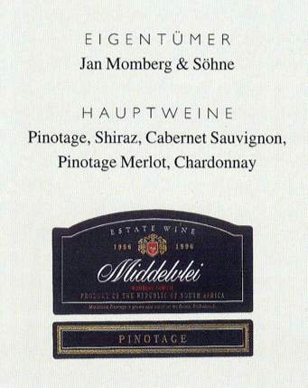 Middelvlei war früher für seinen Pinotage bekannt, später dann für seinen Cabernet Sauvignon und heute für seine köstliche Mischung aus Pinotage und Merlot, elner der besten traditionellen Kap-Verschnitte.